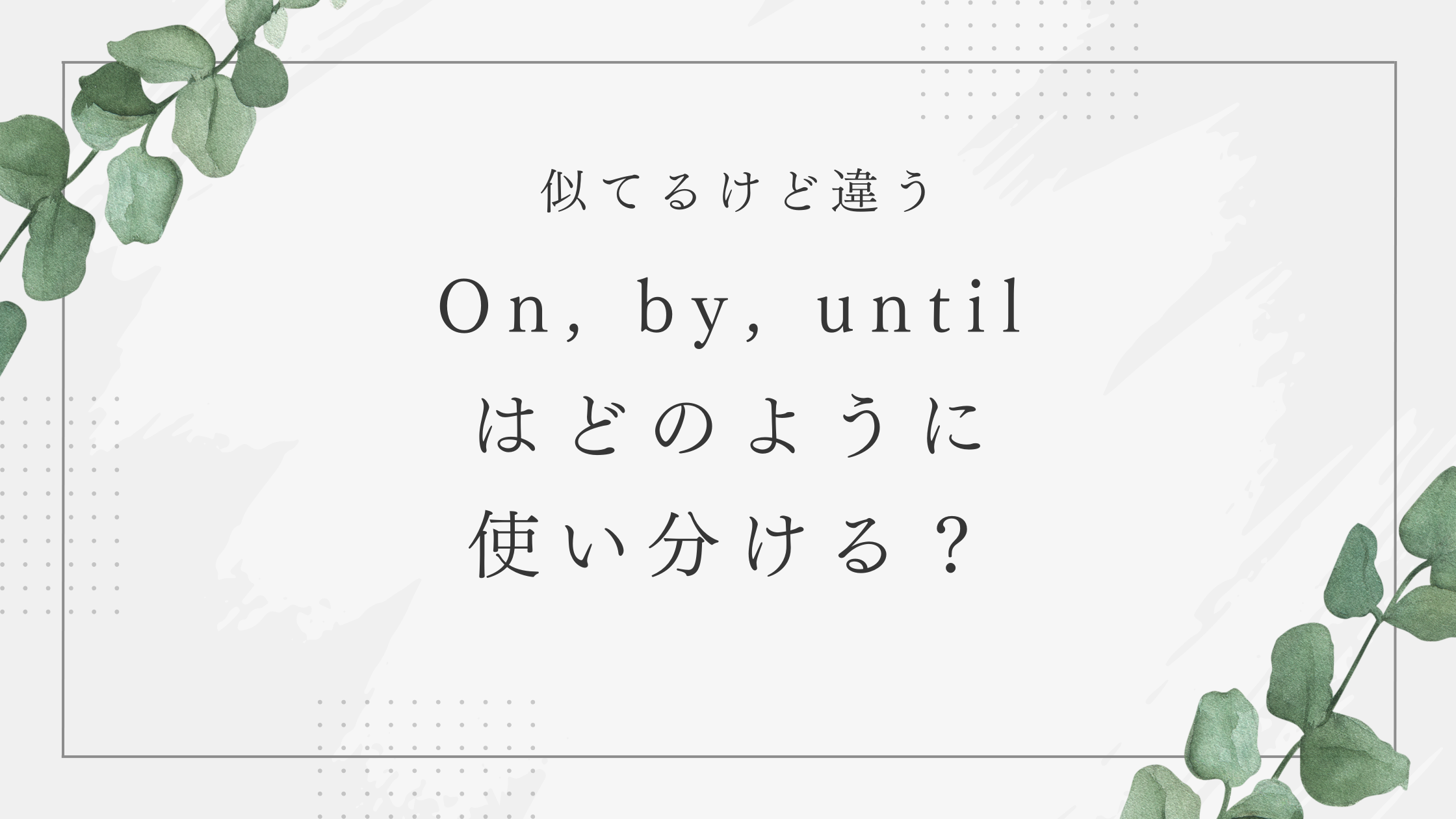 それら時間を扱う接続詞として「On」「By」「Until」などがありますが、いつどれを使えばいいのかよくわからない。